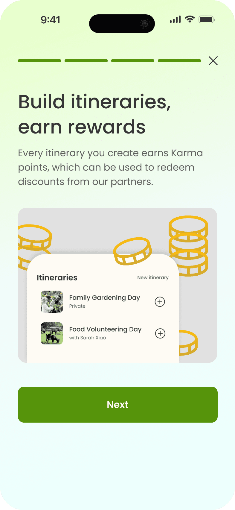 Onboarding: introducing our altruistic mission, and the features that come with it