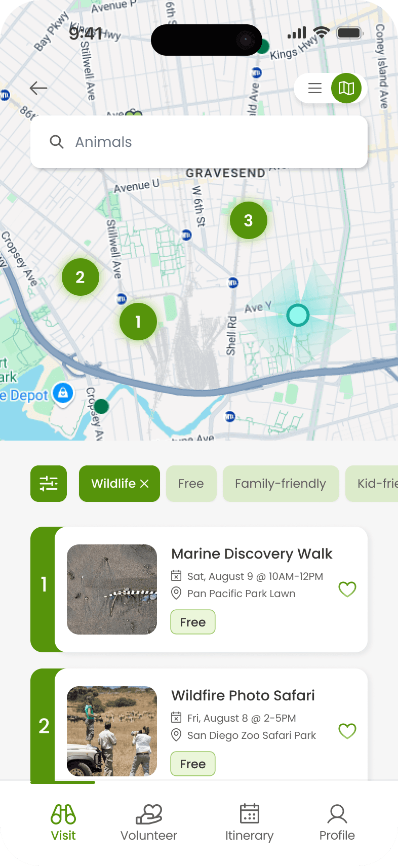 #1: Changing nav bars to “Visit” & “Volunteer” to emphasize the product’s unique value prop